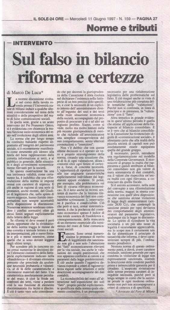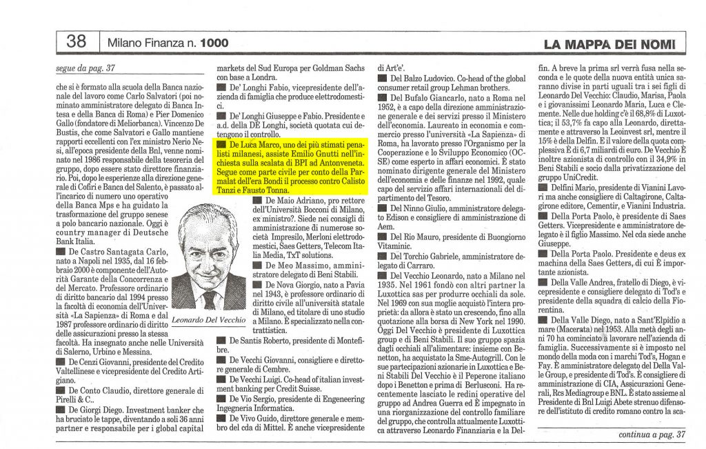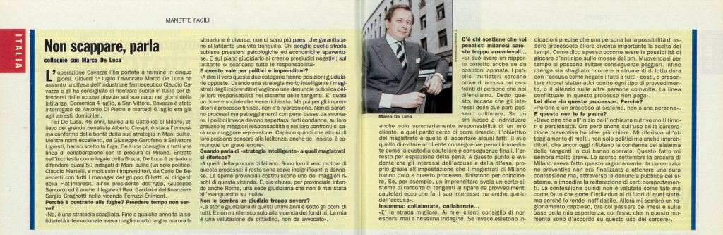 Media & Press Processo Costa ConcordiaTutti i momenti salienti, le principali attività. Tragedia Concordia, parla Marco De Luca by Adminin Processo Costa CrociereNovembre 19, 2018 ... Novembre 19, 2018 Leggi... → Schettino non è stato abbandonato, è lui che ha abbandonato la nave by Adminin Processo Costa CrociereGiugno 19, 2018 ... Giugno 19, 2018 Leggi... → Concordia, l’avvocato di Costa: “Chi vuole seguire Schettino faccia pure” by Adminin Processo Costa CrociereAprile 20, 2017 ... Aprile 20, 2017 Leggi... → Le interviste Milan Channel – Intervista all’Avv. Marco De Luca by Adminin Interviste videoFebbraio 19, 2019 ... Febbraio 19, 2019 Leggi... → Intervista Avv. Marco De Luca – Milan by Adminin Interviste videoFebbraio 19, 2019 ... Febbraio 19, 2019 Leggi... → Marco De Luca – A Casa Loro – 7 Dic 1995 by Adminin Interviste videoFebbraio 18, 2019 ... Febbraio 18, 2019 Leggi... → PressLe interviste più importanti dell’Avvocato De Luca Espansione - 1995 L'Espresso - 1993 Milano Finanza - 1993 Uomini&Business - 1993 Il Sole24 Ore - 1997